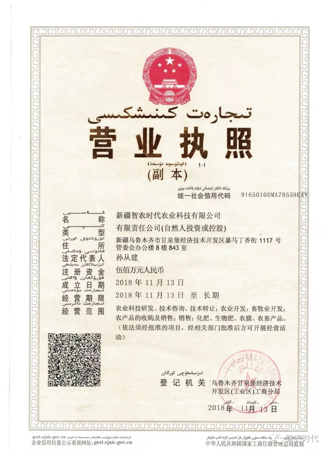 新疆智农时代农业科技有限公司成立于2018年11月13日,注册资金500万人民币元,公司以“专注,用心,服务”为核心价值,希望通过我们的专业水平和不懈努力,提供优质的服务。多年来,新疆智农时代农业科技有限公司一直秉承以用户需求为核心,在专注百货/批发/零售行业同时,提供优质、用心的服务赢得了众多业界的信赖和好评,在逐渐树立起公司良好品牌。公司不仅仅提供专业的服务,同时还建立了完善的售后服务体系,为中途遇到的问题和困难提供指导帮助。我们相信,通过我们的不断努力和追求,一定能够实现互利共赢。